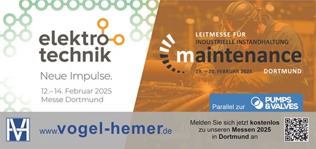 maintenance Dortmund 2025 - Die Leitmesse für Industrie-Instandhaltung in Europa findet am 19. und 20. Februar 2025 in den Westfalenhallen Dortmund statt. Parallel läuft die PUMPS & VALVES Dortmund 2025, wodurch Synergien und spannende Einblicke in verwandte Themenbereiche entstehen. Nutzen Sie die Messe, um Innovationen zu entdecken, Kontakte zu knüpfen und Fachwissen auszutauschen.